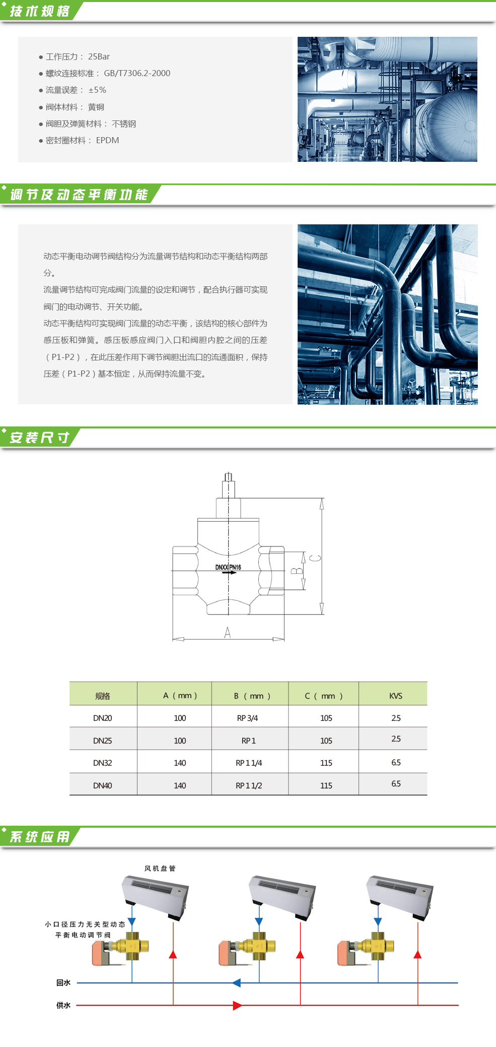 本系列產品集動態平衡與調節功能于一體,根據流量需求調整好閥門開度,無論系統壓差如何波動,只要在閥門的工作范圍內,閥芯即可自動調整可變流道開度,保持流量恒定不變。該閥門采用新穎獨特的剛性結構,徹底克服老舊膜片式閥門的壽命短、調節范圍小等缺點。精確校準的閥芯可確保恒定在±5%的偏差范圍內。通過動態平衡功能動態平衡系統的阻力,保證設備輸送介質流量在一定壓差范圍內不受系統壓力波動影響,保持恒定。根據設備的輸入信號,執行器改變閥門開度,實現閥門的調節和開關功能。