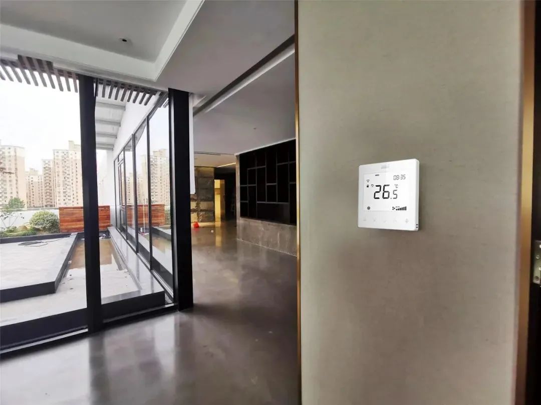 泰州金通·桃李園為了打造低碳節(jié)能型高端住宅小區(qū),在了解江蘇海林及其在國內(nèi)樓宇自控行業(yè)中的地位后,選擇并采用海林HA208溫控器、BV03電動球閥、TH39手動分集水器,分戶采暖智能控溫系統(tǒng)。手動分集水器根據(jù)管道介質(zhì)流量可自行調(diào)節(jié)閥門角度,合理管控室溫等作用;溫控器可有效管理室溫變化,自動根據(jù)室溫調(diào)節(jié)檔位運行,大幅降低能源消耗;電動球閥由溫控器控制,由同步機驅(qū)動,溫控器不斷采樣、處理現(xiàn)場數(shù)據(jù)及發(fā)出控制指令,控制球閥的開啟或關(guān)閉,當(dāng)室溫達到溫控器設(shè)定值時,溫控器令球閥斷電,使閥門開度處于最佳狀態(tài),從而保證室溫在溫控器的設(shè)定范圍內(nèi),實現(xiàn)室溫的自動控制。