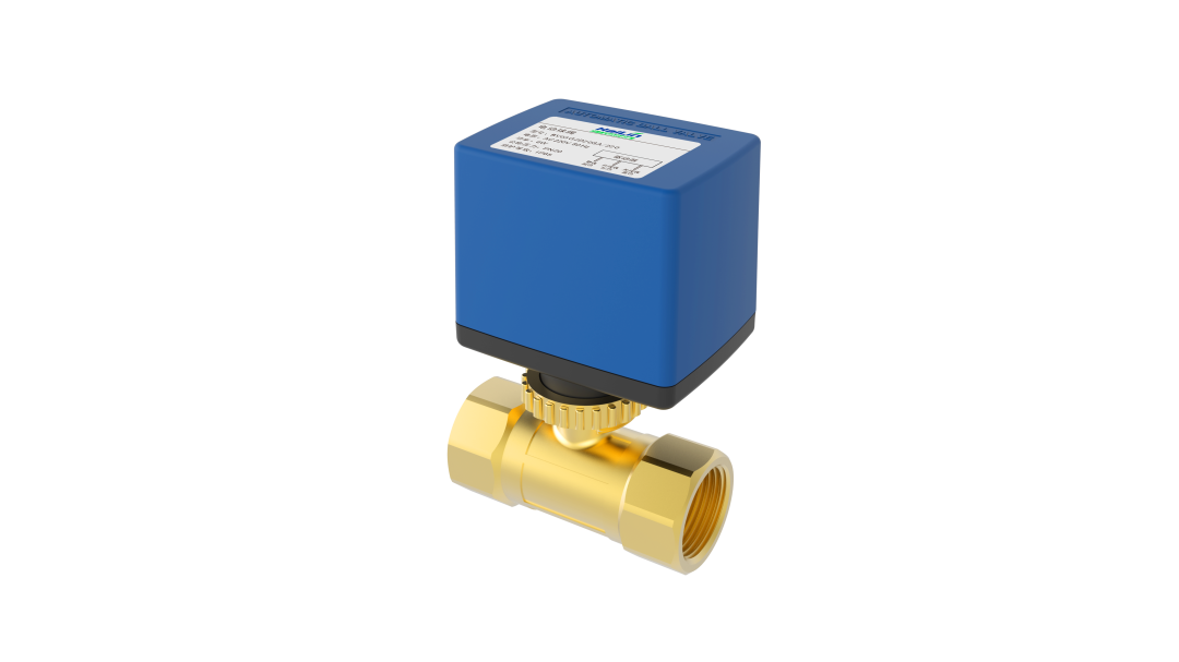 控制閥由雙向電機驅(qū)動,電機與溫控器通過公共端、開啟端、閉合端連接。溫控器不斷采樣、處理現(xiàn)場數(shù)據(jù),發(fā)出控制信號,令電動球閥電機運行或停止,控制電動球閥的開閉程度,冷水或熱水進入風(fēng)機盤管,為房間提供冷氣或暖氣;當(dāng)室溫達到溫控器設(shè)定值時,溫控器令電動球閥斷電,使閥門開度處于最佳狀態(tài),室溫始終保持在溫控器設(shè)定的溫度范圍內(nèi)。