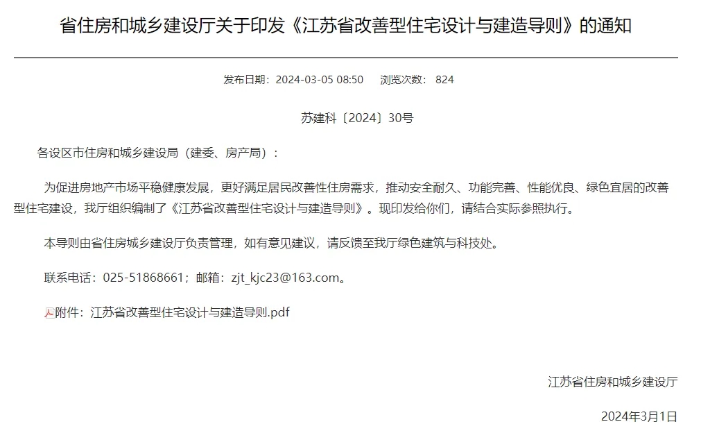 江蘇省住建廳印發《江蘇省改善型住宅設計與建造導則》
