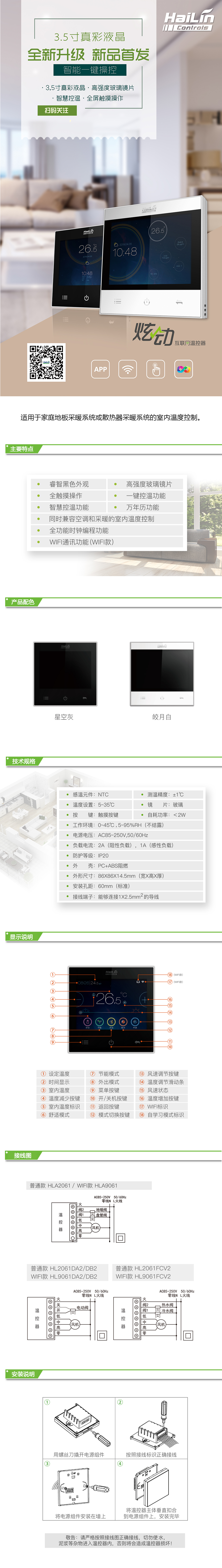 適用于中央空調(diào)風(fēng)機(jī)盤管系統(tǒng)或風(fēng)管道系統(tǒng),自動調(diào)節(jié)室內(nèi)溫度。炫麗3.5寸真彩液晶屏,全屏觸摸操作,星空灰、皎月白兩種顏色可選,外觀設(shè)計簡約、時尚,表達(dá)了最直觀的美。智慧控溫,一鍵操作,具有自學(xué)習(xí)功能,將智能科技融入舒適生活。