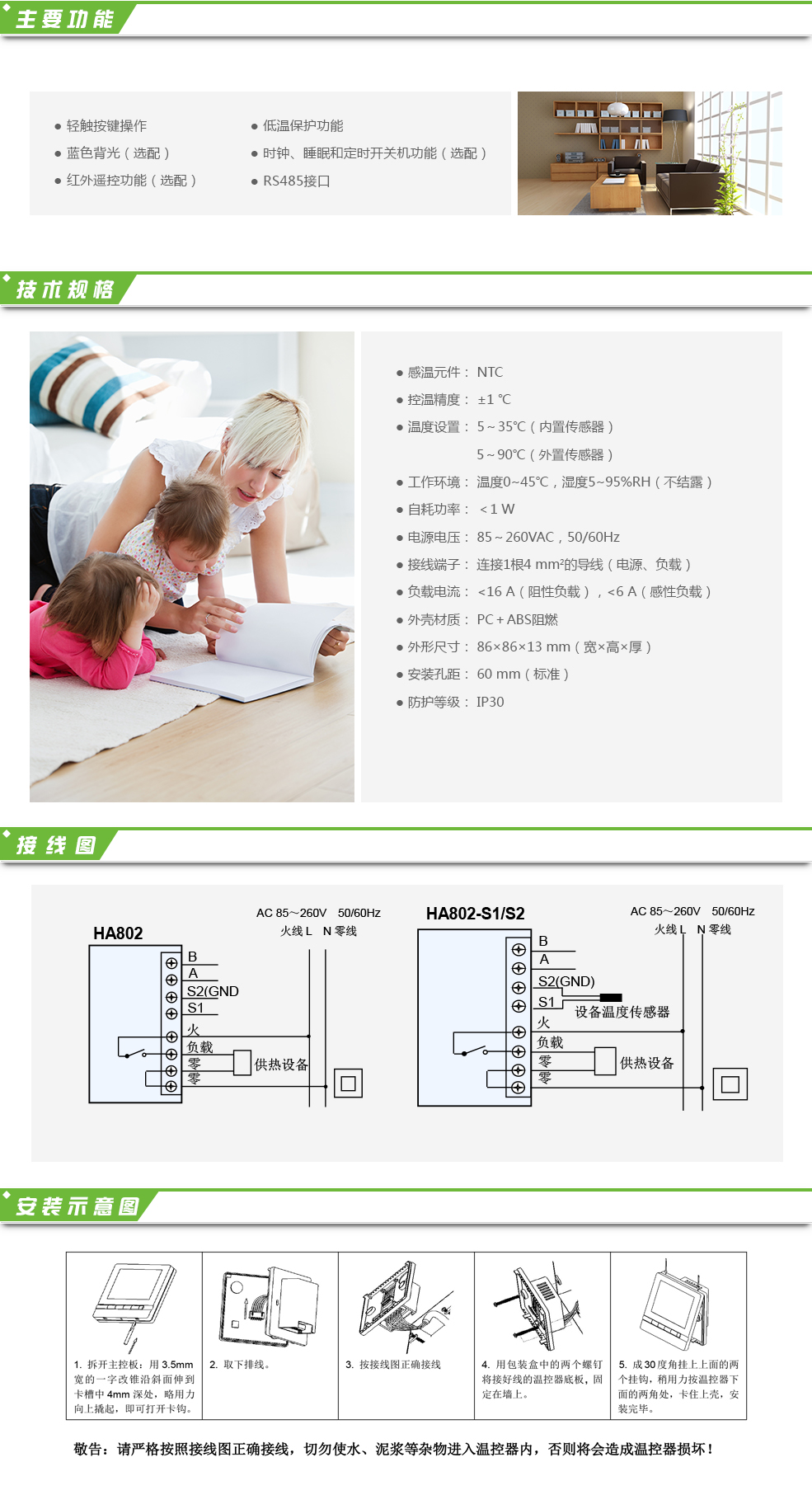 網絡型溫控器HA802-MD是適用于電采暖系統的采暖溫控器,用于家庭、辦公樓、寫字樓、學校等場所。通過控制發熱電纜或電熱膜的通電、斷電,達到調節室內溫度的作用,同時具備低溫保護功能。可通過網絡(MODBUS 協議)實現遠程數據采集和集中控制。