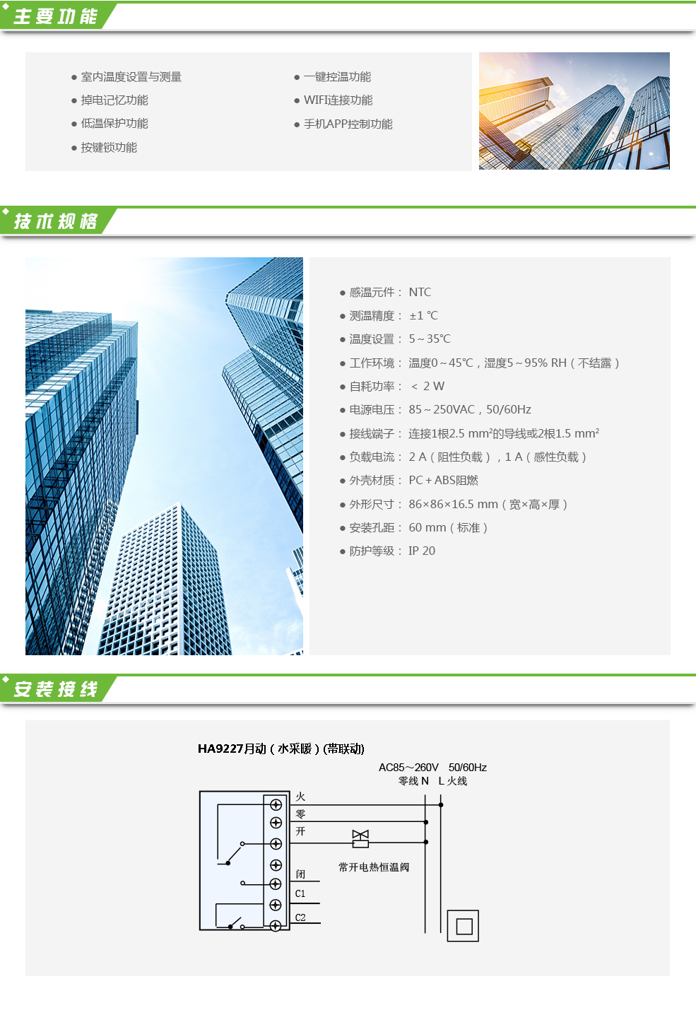 月動(水采暖)溫控器(聯動干觸點)是大液晶顯示供熱專用溫控器,適用于工業、商業及家庭居室的溫度控制,控制供熱閥門的開啟與關閉。帶有一組干觸點輸出,聯動鍋爐輸出。